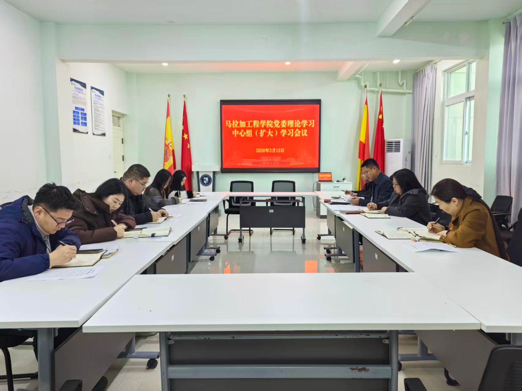 3月12日,马拉加工程学院在114会议室召开学院党委理论学习中心组(扩大)学习会议,专题学习国家民族宗教政策法规。学院全体教职工参加会议。会议由学院党委书记赵先锋主持。