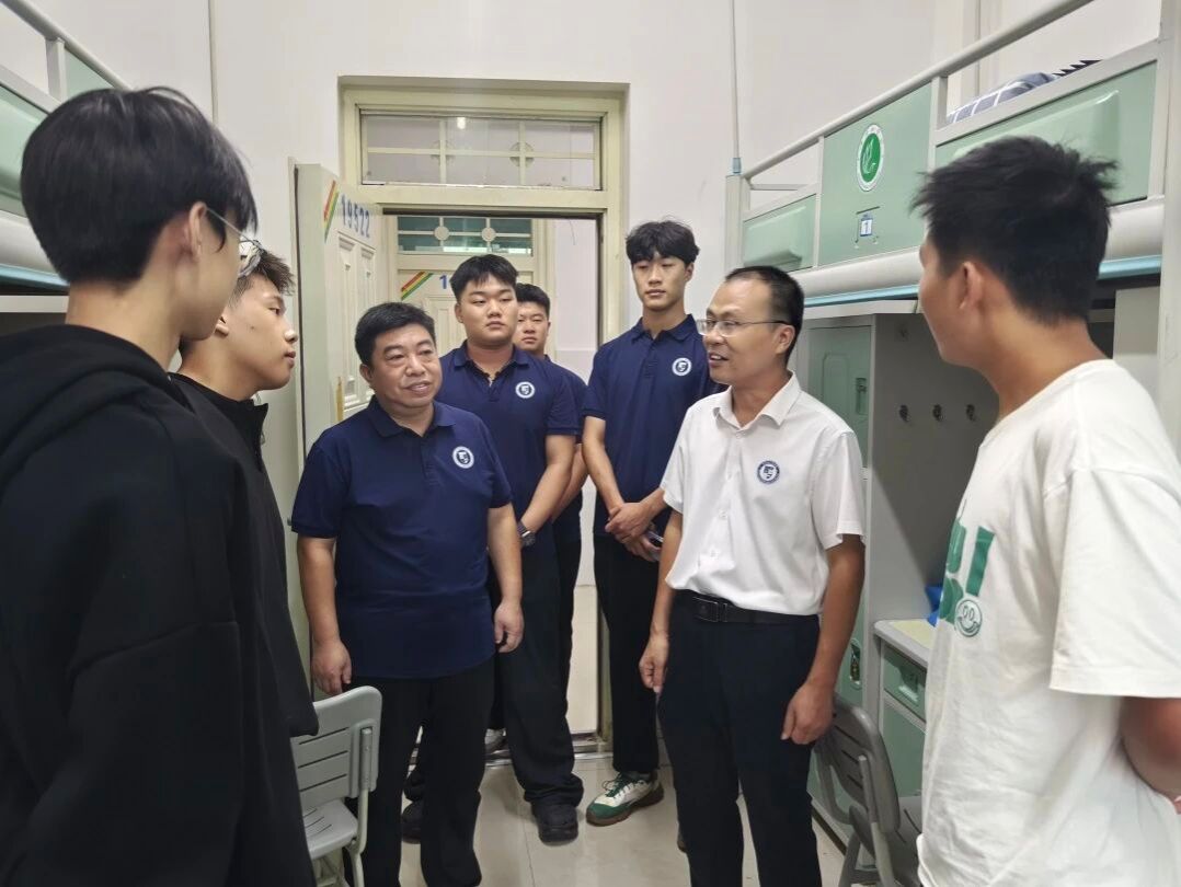 9月6日至7日,马拉加工程学院全体领导班子和2025级新生辅导员,分批深入新生宿舍开展走访慰问活动。在走访慰问过程中,学院党委书记孙学荣细致询问新生的籍贯来源、初入校园的感受及生活适应情况,鼓励大家积极参与即将开始的军训,锤炼意志品质,增强纪律意识。她勉励新生尽早明确学习目标,深化专业认知,树立远大理想,走好大学成长第一步。院长樊爱宛重点关注新生的人际适应与安全防范意识,提醒同学们注意人身与财产安全,提高防诈骗警觉性。他同时关心新生前置课程的学习成效,鼓励有志于科研实践的学生主动联系导师、走进实验室,提前融入学术环境,提升综合能力。随行教师还就军训期间的作息安排、宿舍考勤制度、校园安全规范等事项进行细致讲解,并耐心解答新生在校园生活、学习规划等方面的疑问,帮助学生消除困惑、增强归属感。
