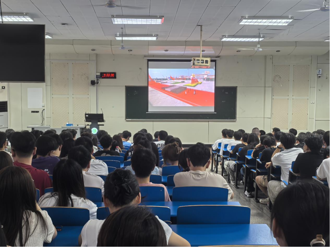 9月3日,学院组织全体学生集中收看纪念中国人民抗日战争暨世界反法西斯战争胜利80周年大会实况直播。整齐的方阵、现代化的武器装备,展现了我国国防和军队建设的重大成就,让在场师生深受震撼。当日下午,学院各年级组织开展爱国主义教育主题班会,观看抗战胜利主题演讲和十四年抗战编年史视频,重温那段充满苦难与辉煌的历史。在交流研讨环节,同学们踊跃发言,纷纷表示要夯实专业基础,以实际行动报效国家。