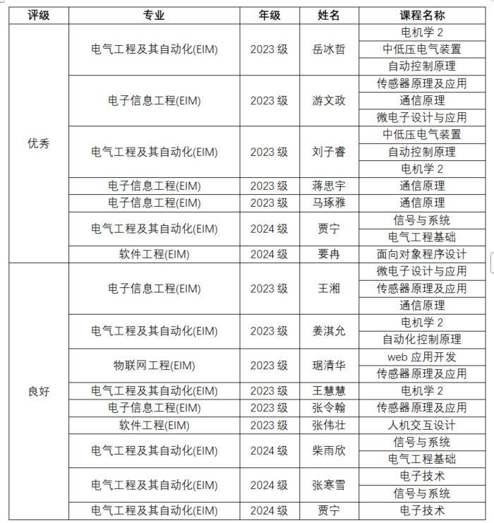 根据“智汇课堂·优笔记”引进课程深度学习激励活动要求,经学院评审小组对学生的笔记完整性、逻辑性、个性化思考及视觉呈现效果进行了综合评比,刘子睿等7名同学总评等级为优秀,贾宁等9名同学总评等级为良好,评定结果公示如下: